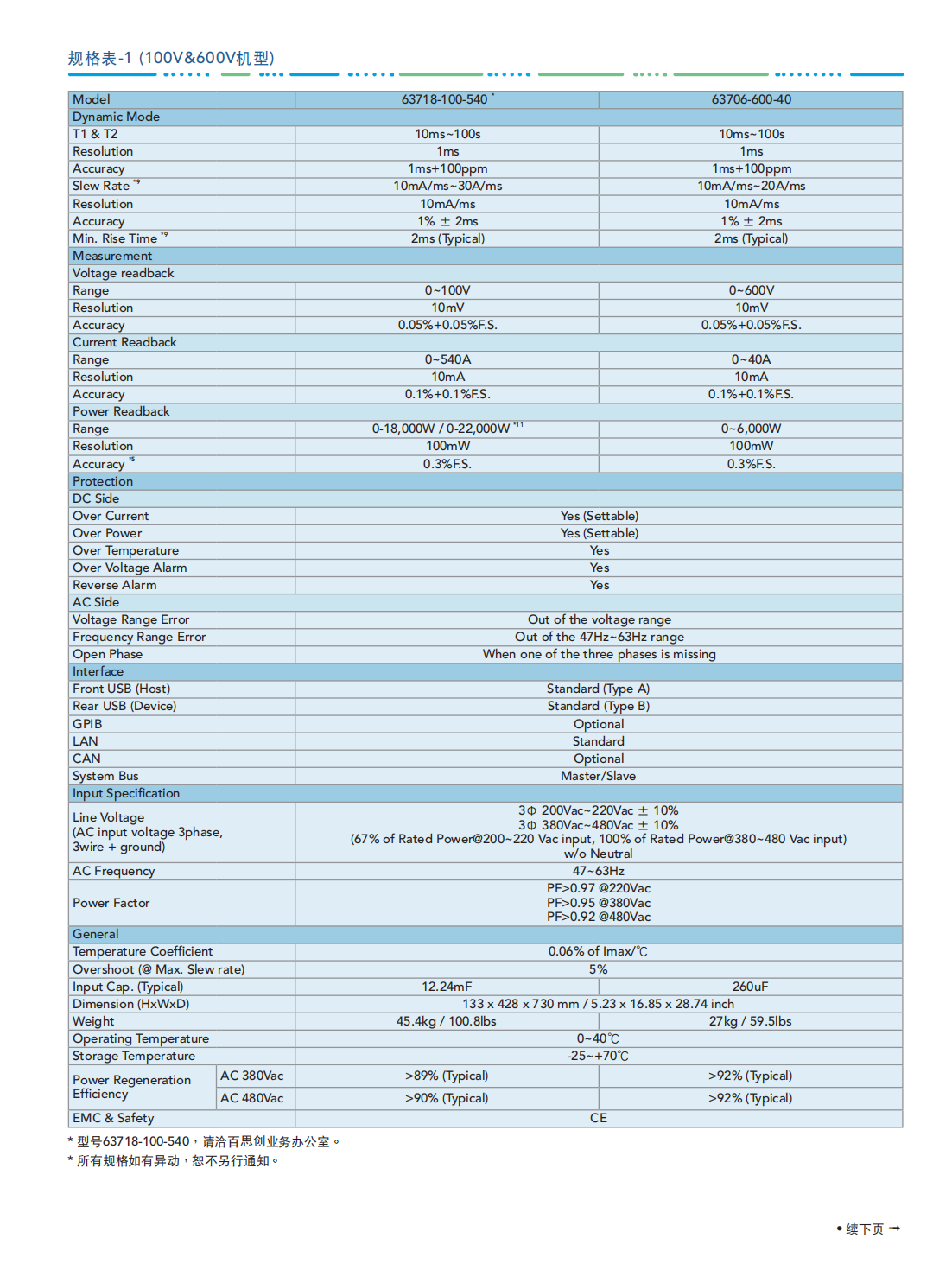 名  称:Chroma能源回收式直流电子负载63700 系列